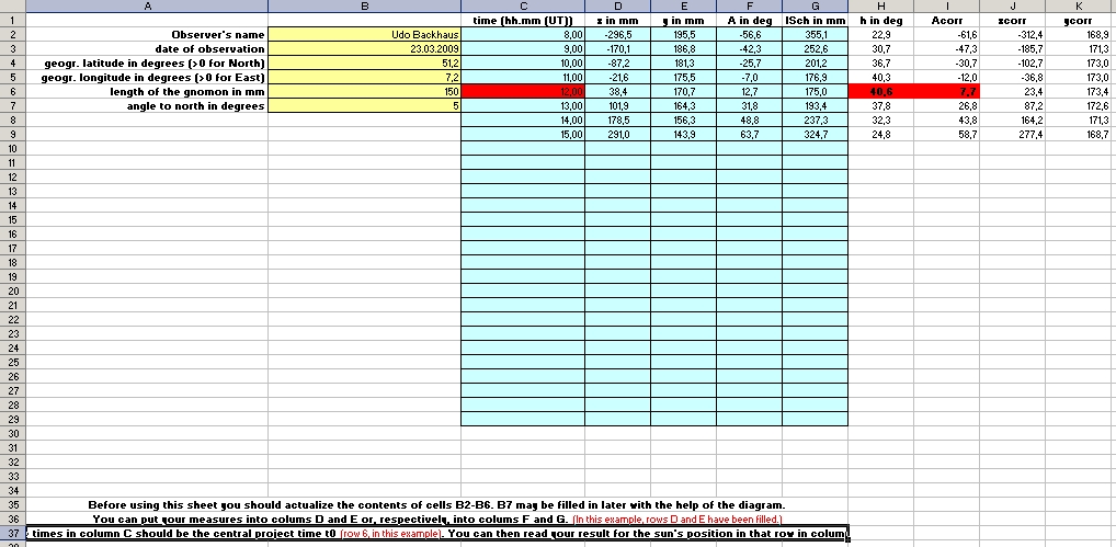 1 To be truly we must emphasize that the evaluation normally becomes circular at this point: We want to measure the earth's radius but we use it by calculating the distance between the observers from their geographical positions! The only way of breaching this circle would be to measure the needed distance by oneself: by bike, by car, ... Perhaps some measures of quite near observers will be exact enough to evaluate their results, to measure their distance and to get a satisfying - and circle-free! - value of the earth's radius.