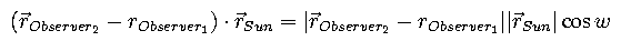 The distance Δ can be calculated when the geographical coordinates of the both observers are known. For the calculation of w it is necessary to determine the local sideral time of the observers and the position of the Sun, that means its geocentric equatorial coordinates.