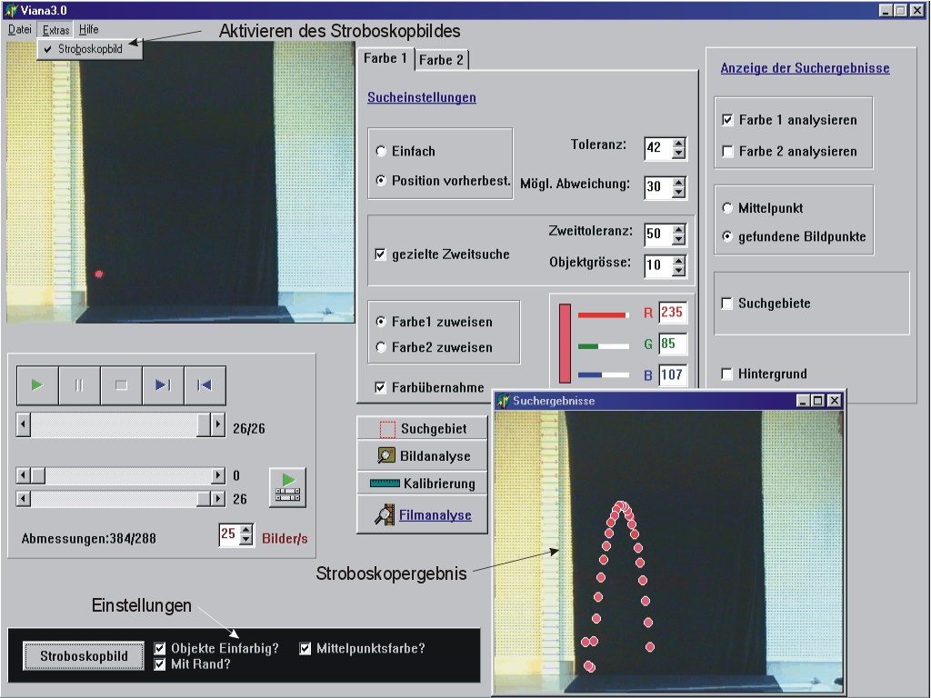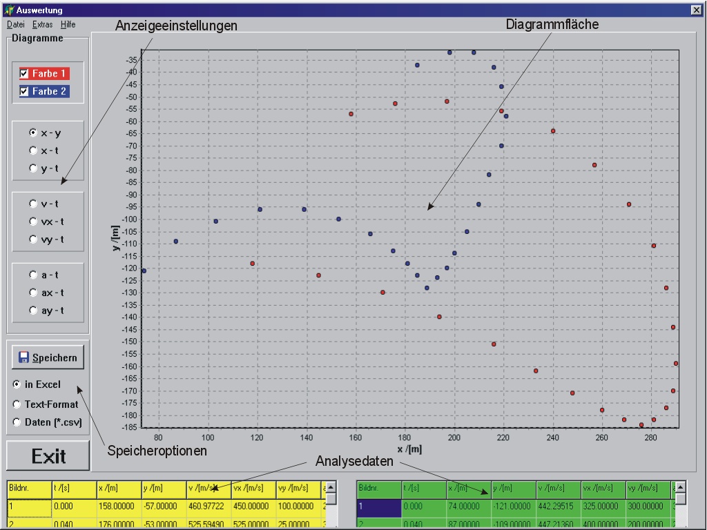 Objekte. Es ermöglicht eine Analyse physikalischer Filmsequenzen.