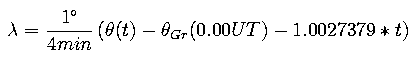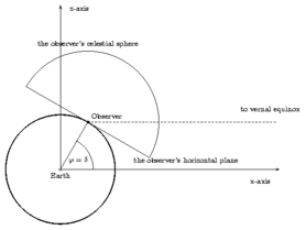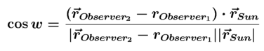 The distance Δ can be calculated when the geographical coordinates of the both observers are known. For the calculation of w it is necessary to determine the local sideral time of the observers and the position of the Sun, that means its geocentric equatorial coordinates.